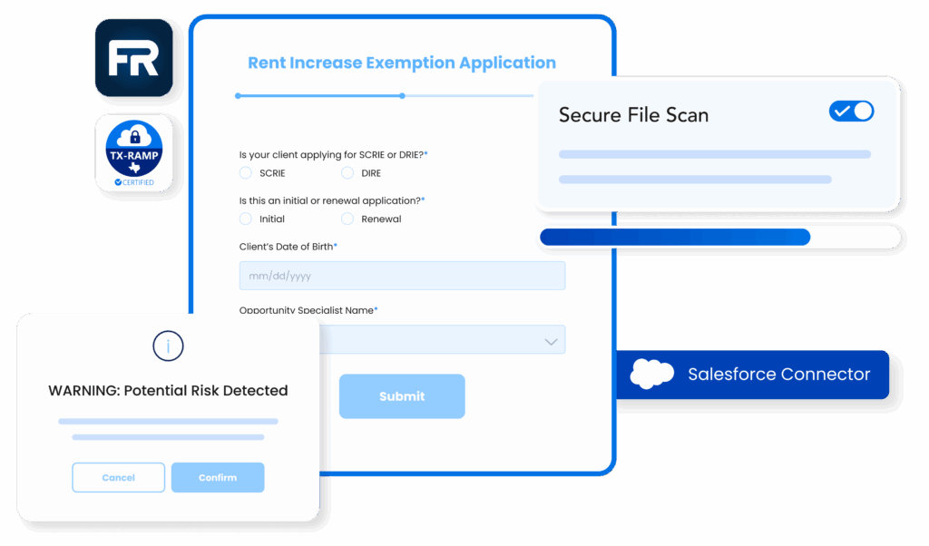 FormAssembly’s Solution: FormAssembly integrates directly with Salesforce and other enterprise systems, enabling bidirectional data syncing and prefilled forms. Agencies can centralize data collection, store supplemental documents in SharePoint, and provide staff with a single, cohesive view of information.