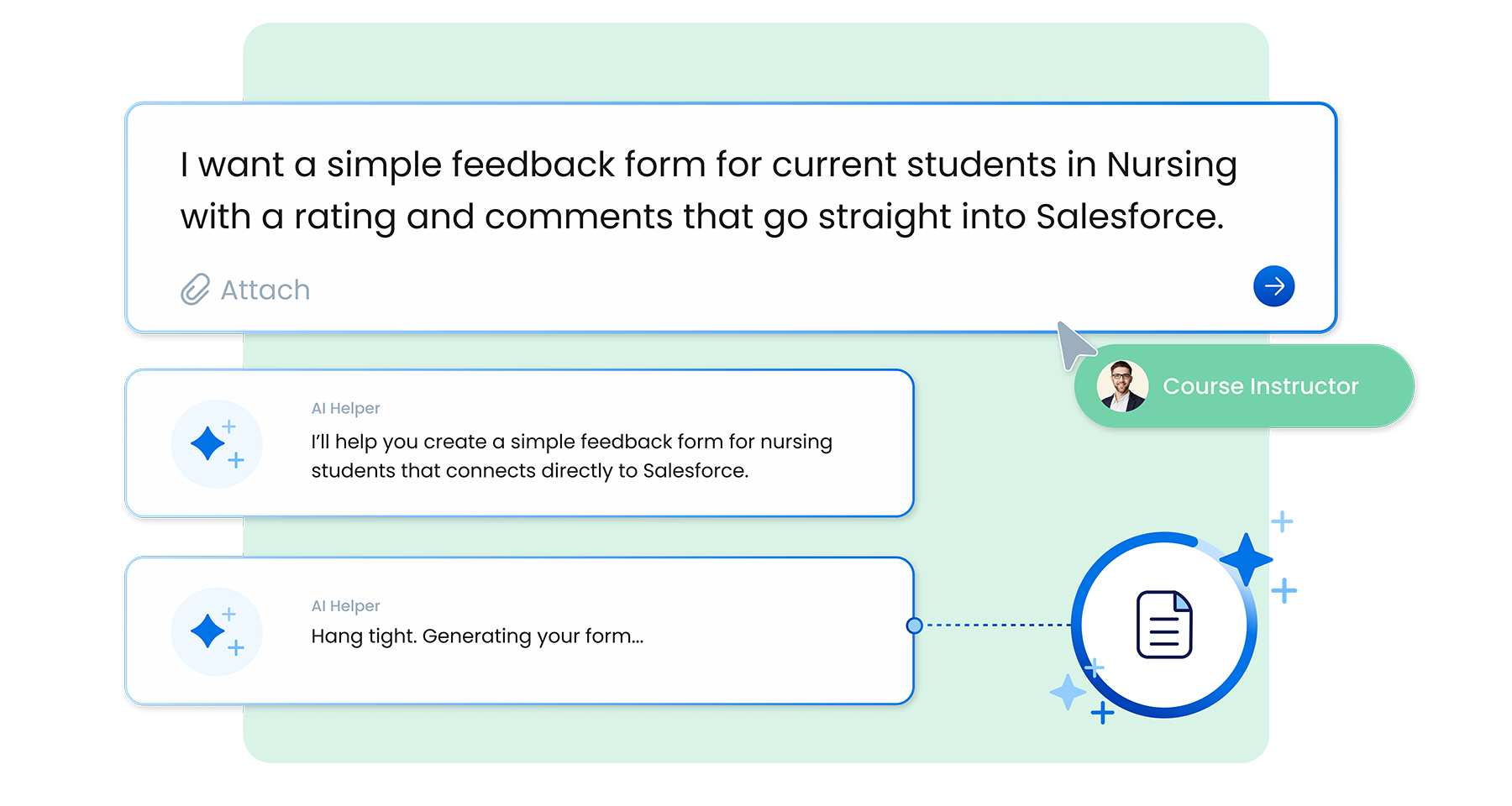 FormAssembly puts people in control. With Fai, there are no black boxes or hidden logic. Every AI action is transparent, explainable, and easy to adjust. And because Fai is built to assist, not replace, you can pause or turn off AI support at any time and keep working seamlessly in the FormAssembly Atlas platform.