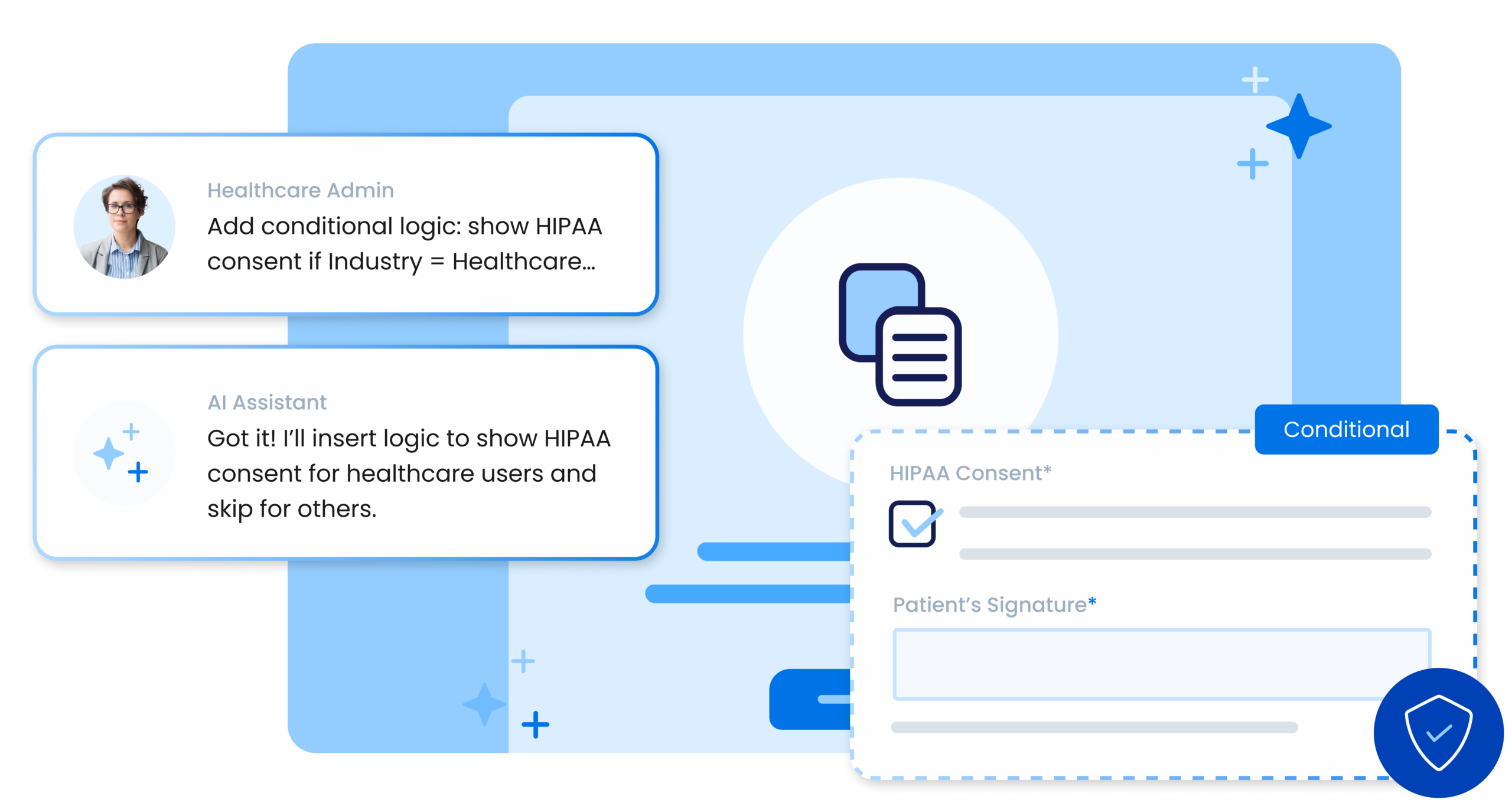 Fai, FormAssembly’s agentic AI assistant, acts like a built-in consultant helping teams move from ideas to governed workflows faster. Describe what you need to collect, and Fai helps assemble the right form structure, validation logic, and workflow setup.