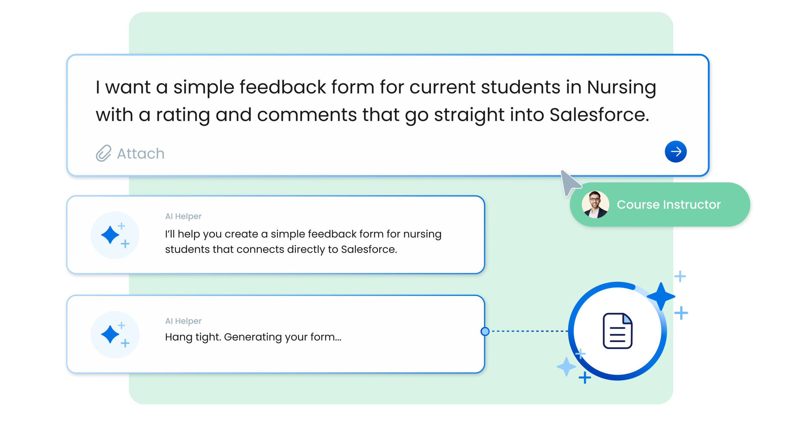 Fai, FormAssembly’s agentic AI assistant, helps IT teams create secure, compliant forms and workflows quickly. Describe the data you need to collect, and Fai generates structured forms, validation rules, and routing logic that adhere to your organizational security policies and compliance requirements.