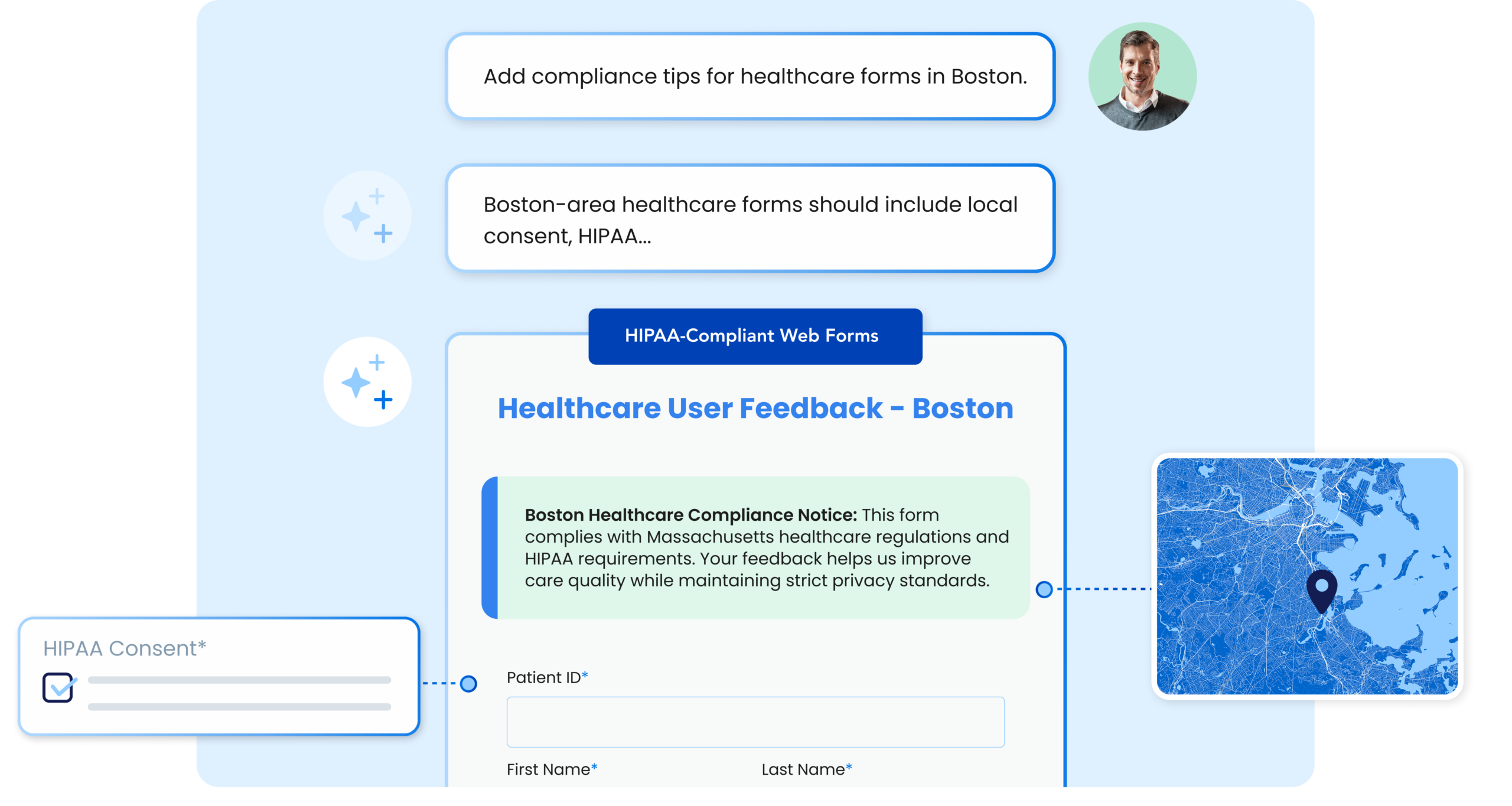 Describe the process you want to automate — such as generating a contract, routing it for signature, and storing the final record — and Fai, FormAssembly’s agentic AI assistant, helps create the forms, logic, and workflow steps needed to run it securely.