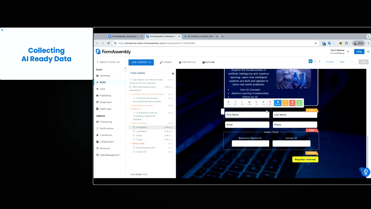 - Build the Foundation for AI: See a live demonstration of how FormAssembly’s tools deliver the clean, high-quality data your organization needs to fully leverage the power of automation and artificial intelligence.